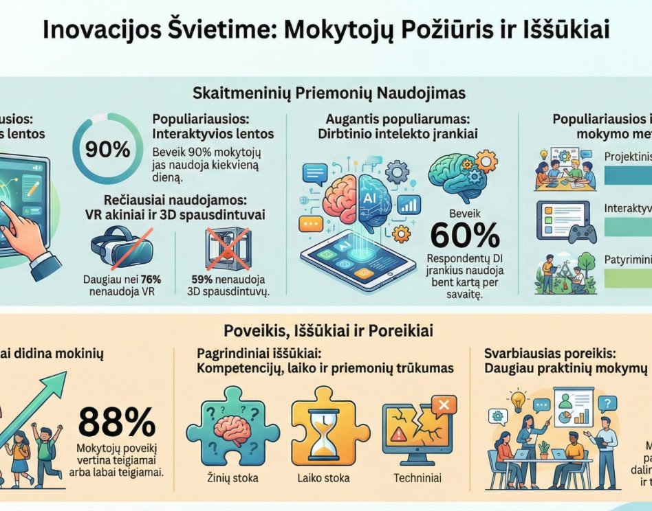 Kviečiame susipažinti su apklausos "Inovacijos, skaitmenizacija, pažangios mokymo(si) priemonės ugdymo procese" rezultatais.