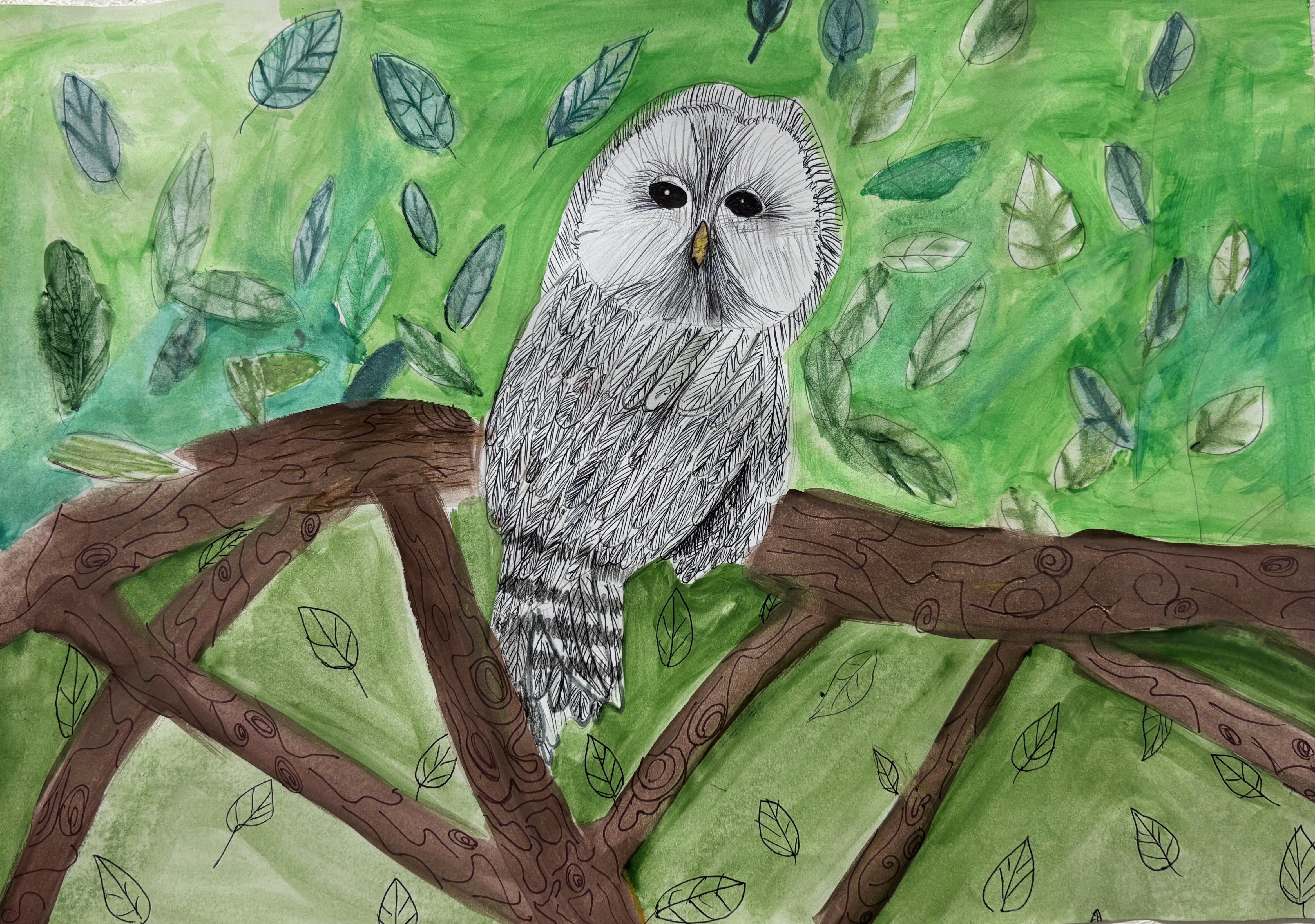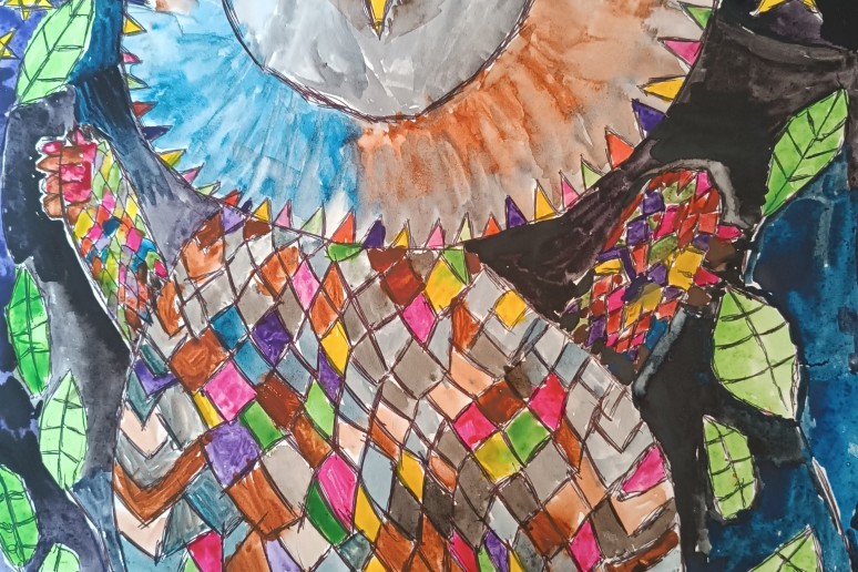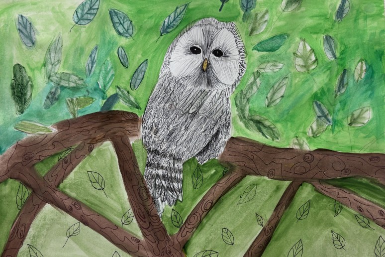 I vieta - Jonė, Kelmės raj. Tytuvėnų gimnazijos meno skyrius, „Pelėdėlė naktyje“.