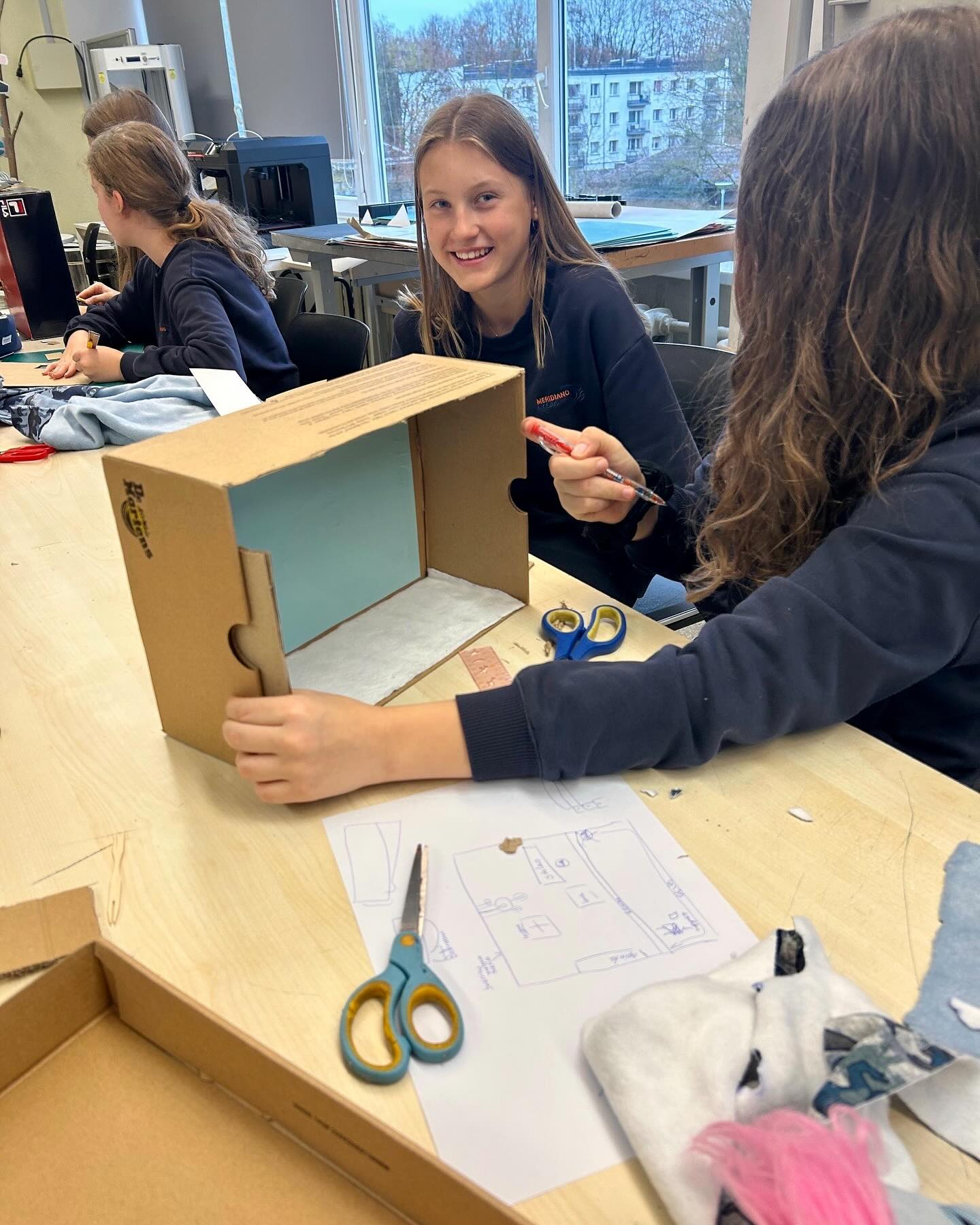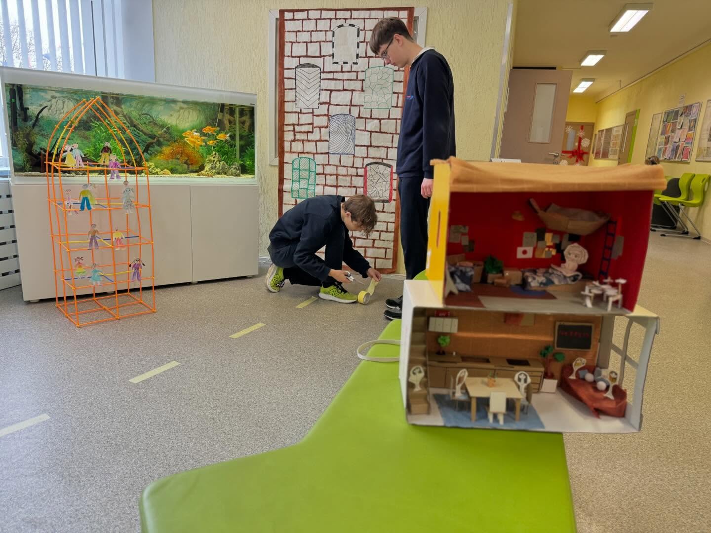 Galiausiai, visas savo mintis mokiniai perkėlė į kūrybą – gamino namus, kuriuose „apsigyveno“ įvairūs žmonės: skirtingų pomėgių, kultūrų, tautybių, tačiau gyvenantys draugiškai ir kaimyniškai.